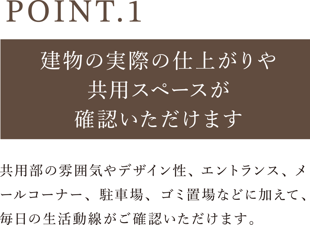新築分譲マンションの多くは、建物建築中にモデルルームやパンフレットを見て購入するケースが多いため、 ご入居後にイメージと異なる場合がございます。 グランドキャッスル戸畑Sta.は実際の建物内を確認できますので、 より安心してご検討いただけます。