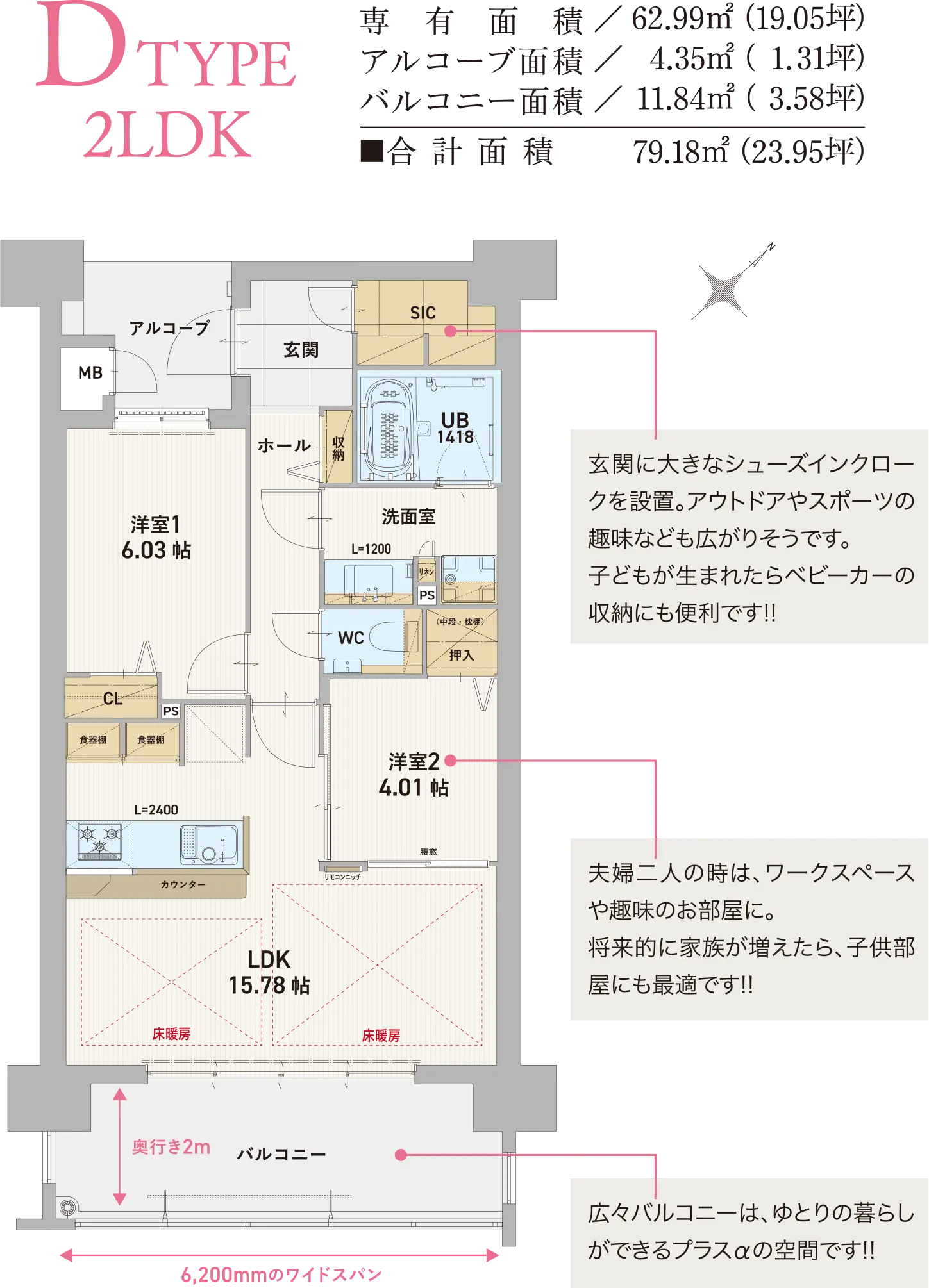 マンションの価格は、一般的に専有面積が広くなり、部屋数が増えるほど高くなるもの。つまり、住まう方が“自分にぴったりの間取り”を考えた上で、3LDKよりもコンパクトな2LDKを選べば、購入費用の抑制に繋がり、その分を家具・家電の費用や将来のための蓄えなどに役立てることができます。