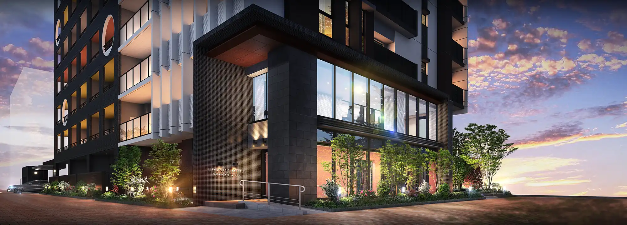 *CGパースは、図面を基に描き起こしたもので、実際とは異なる場合がございます。植栽は竣工から初期の生育期間を経た状態のものを想定して描いております。予めご了承ください。
